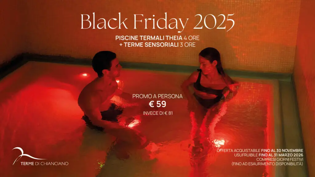 Black Friday 2025 Michele / 7 Novembre 2025 Day Spa Piscine Termali Theia + Terme Sensoriali Acquistabile fino al 30 novembre